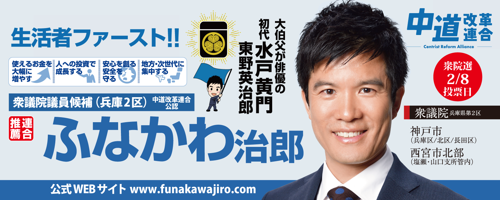 私、ふなかわ治郎に皆さまのご意見をお寄せください。